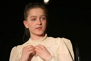 "Месяц в деревне" Мастерская М.А. Захарова; реж. В. Тыщук В спектакле заняты: Мария Маркова, Кирилл Солёнов, Сергей Демидов, Анна Терещенко-Островская, Александра Виноградова, Ильяс Тамеев, Олег Соколов, Евгений Галенко, Екатерина Давыдова-Тонгур, Нинель Андреевна Шефер Место действия: ГИТИС Дата: 11 июня, 2007 год. |